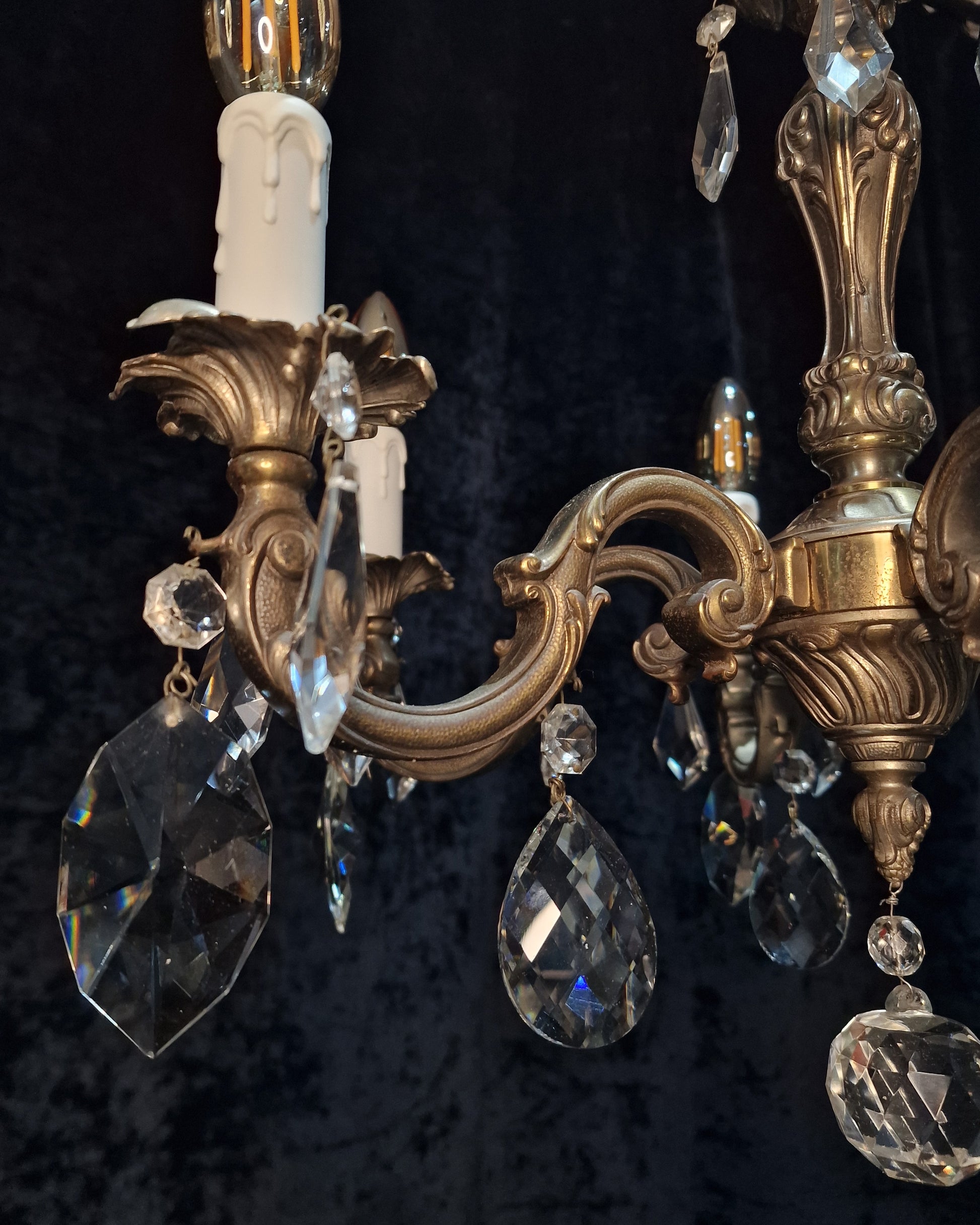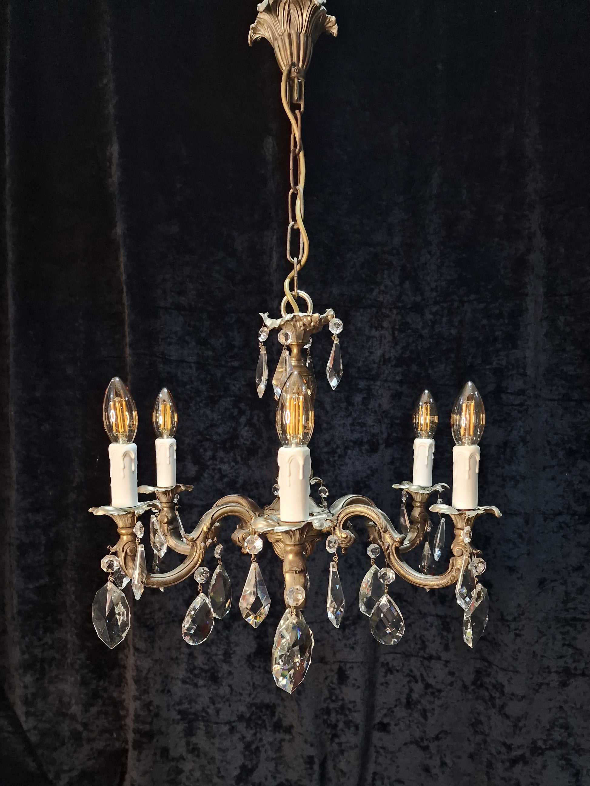 Beautiful Heavy Antique French 6 Arm Bronze Nickel plated Crystal Chandelier Light