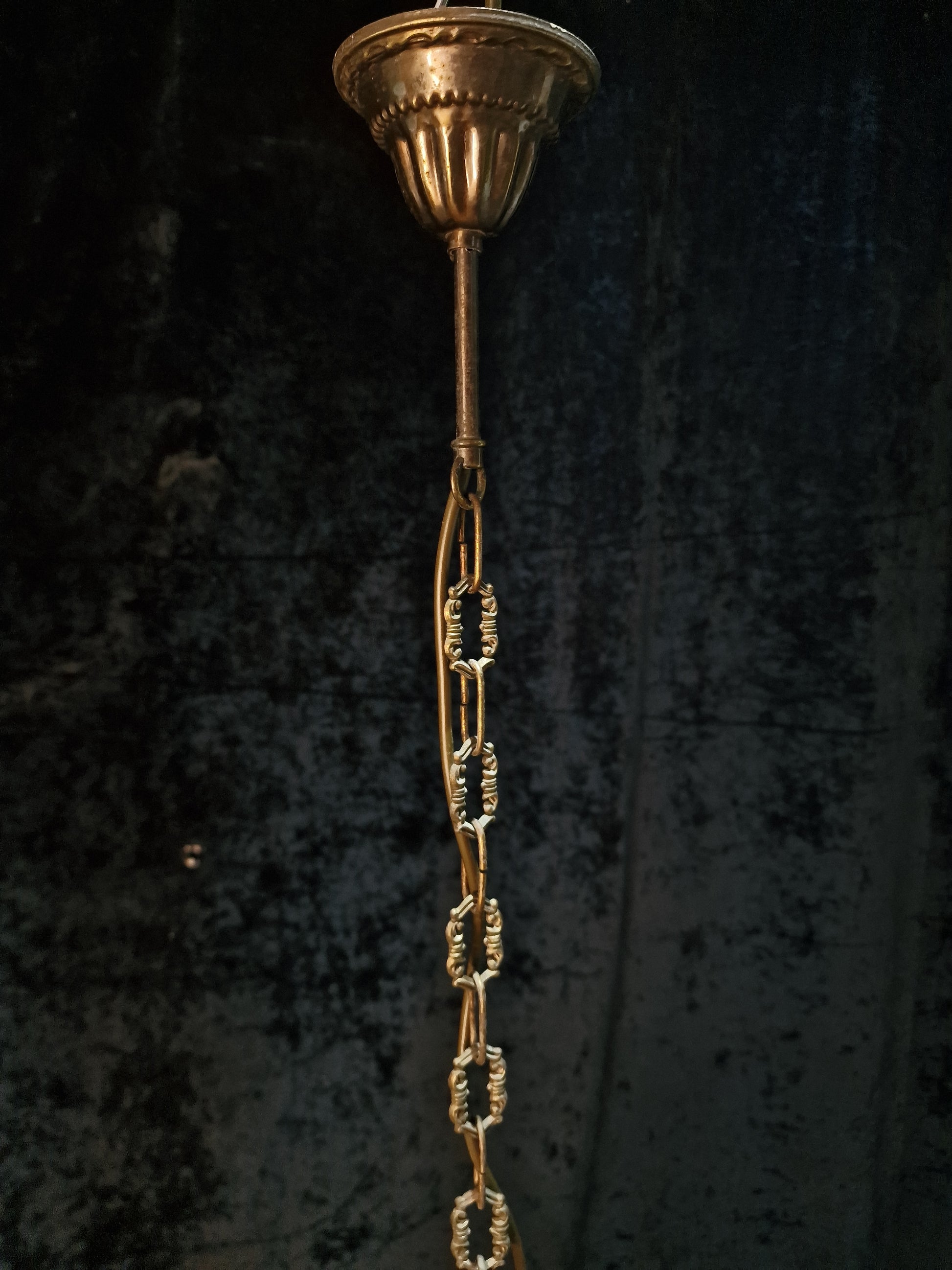The chandelier is complete with a variety of sparkling glass crystals and a faceted crystal ball which are all complete with no damage.