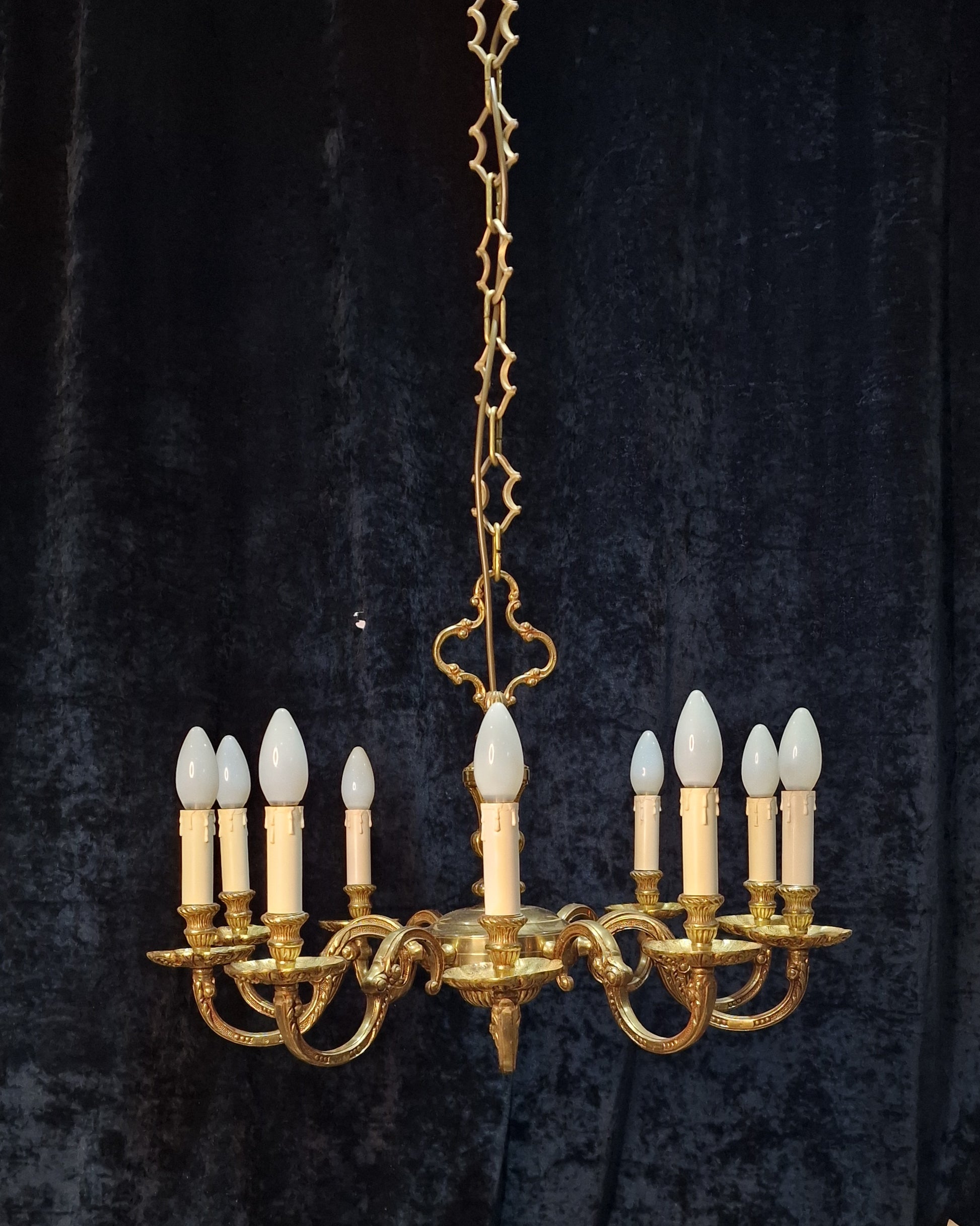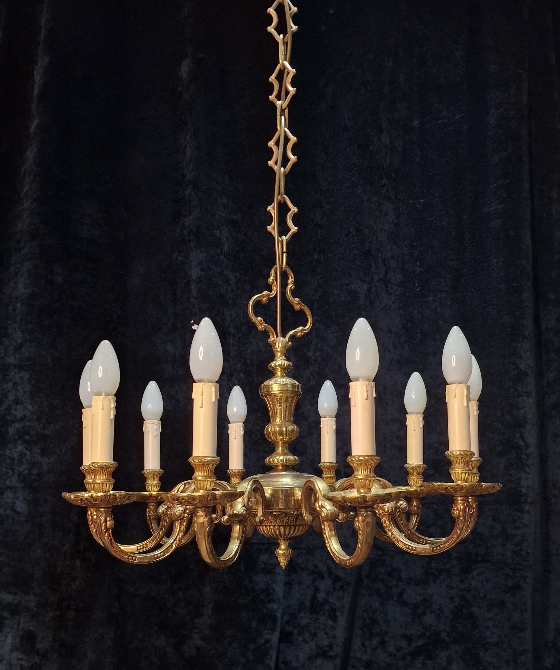 Stately Heavy Vintage French Empire Style 10 Arm Brass Chandelier Ceiling Light